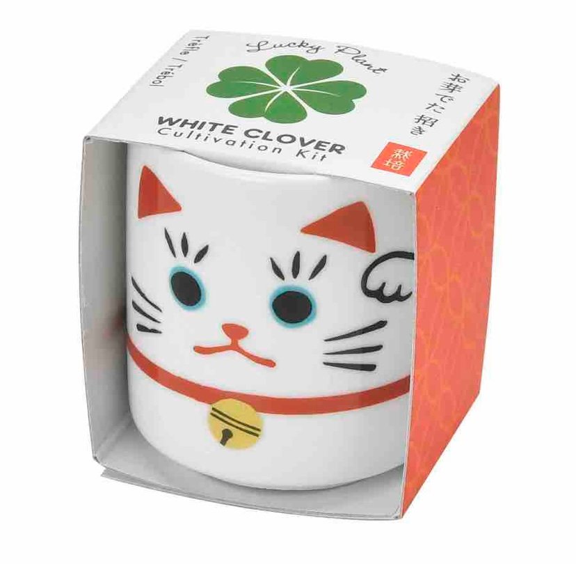 Get this Beckoning Cat White Clover Growing Kit for yourself, friends and family for good luck!