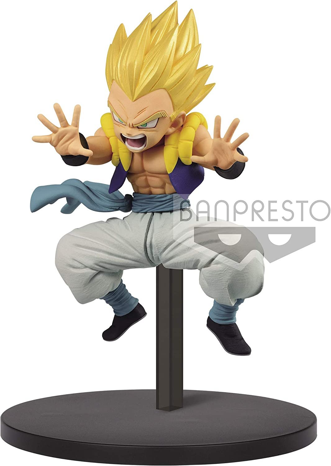 Super Saiyan 3 Gotenks faces off against Super Saiyan Vegito in this high-energy Dragon Ball Super figure series from Banpresto.